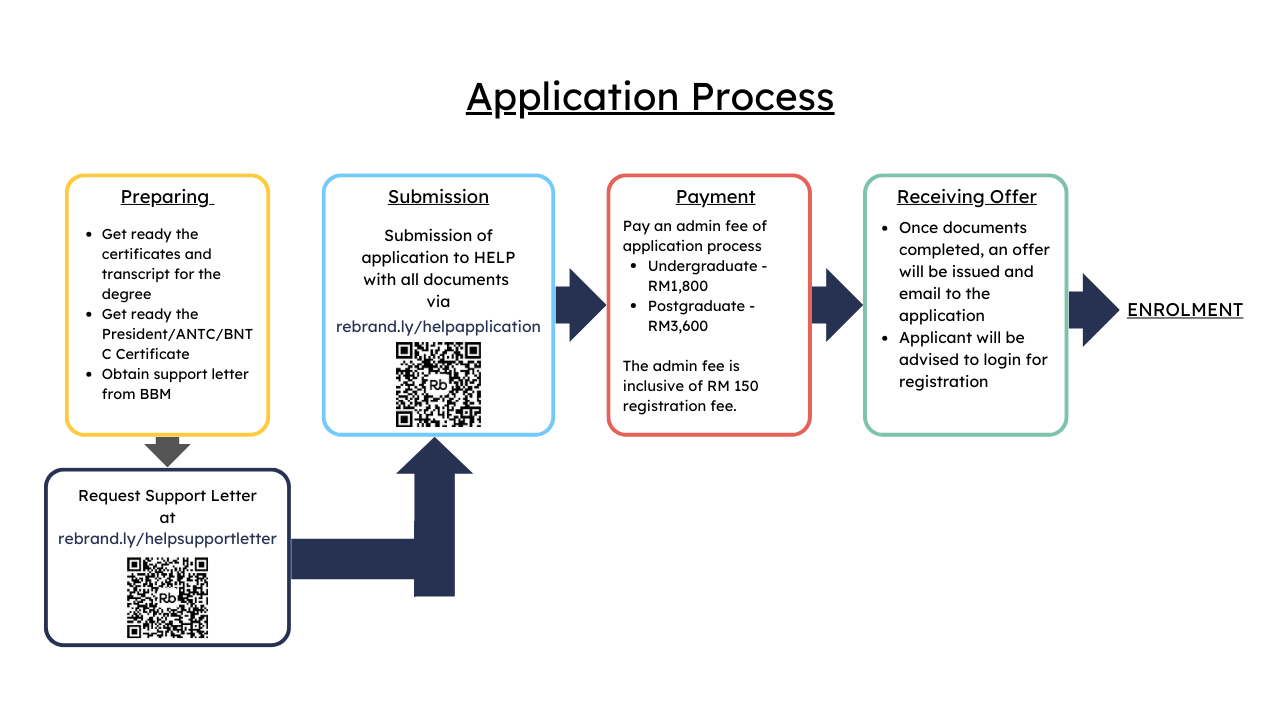 • Payment of RM 1,800 (Undergraduate)/RM 3,600 (Postgraduate) Application Fee